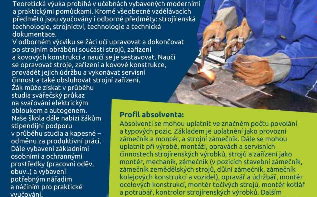 | 23-51-H/01 | Strojní mechanik (Zámečník) | 3 | ZZ + výuční list | 29 | 12 | 15 | Žádné | Denní | Neuvedeno | Ne | |