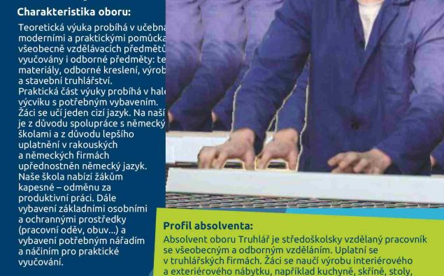 | 33-56-H/01 | Truhlář | 3 | ZZ + výuční list | 56 | 28 | 30 | Žádné | Denní | Neuvedeno | Ne | |