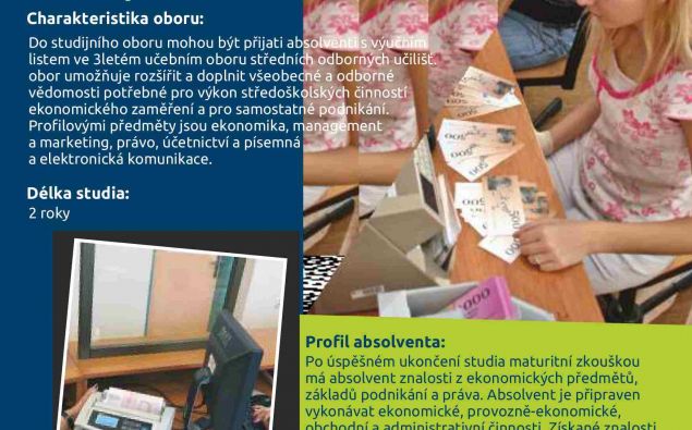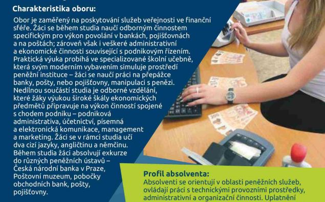 | 63-41-M/01 | Ekonomika a podnikání (Finanční služby) | 4 | Maturitní zkouška | 48 | 27 | 30 | ČJ, M | Denní | Neuvedeno | Ano | |