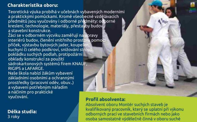| 36-66-H/01 | Montér suchých staveb | 3 | ZZ + výuční list | 11 | 3 | 15 | Žádné | Denní | Neuvedeno | Ne | |