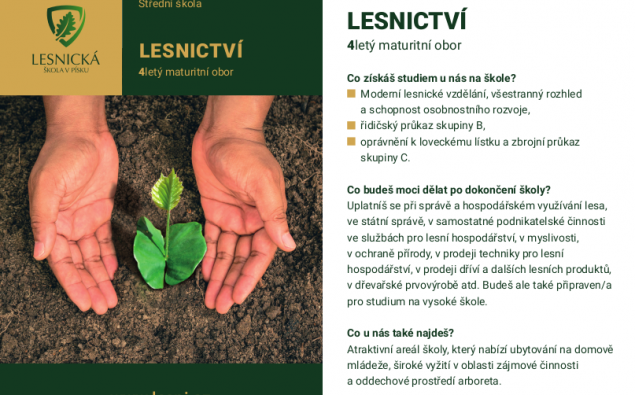 | 41-46-M/01 | Lesnictví | 4 | Maturitní zkouška | 116 | 56 | 56 | ČJ, M | Denní | Neuvedeno | Ne | |