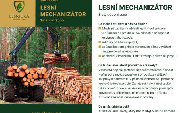 | 41-56-H/01 | Lesní mechanizátor | 3 | ZZ + výuční list | 35 | 24 | 20 | Žádné | Denní | Neuvedeno | Ne |